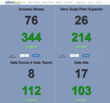 code in ogni vostro ambiente( casse, camerini, toilette, ecc.) con Alerts visivo ,più mail e sms, al raggiungimento della soglia limite. I dati di capienza e tempi di attesa vengono trasmessi a